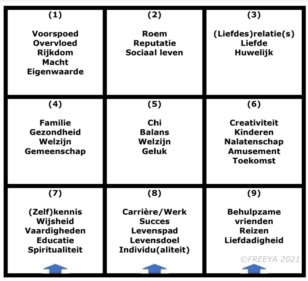 Tegenwoordig lijkt het wel alsof men alleen maar carrière wil maken en goed geld wil verdienen, zeker mijn generatie-Y-genoten (de millennials). Door alle burn outs die deze generatie lijkt te treffen, denk ik dat er vooral onvoldoende aandacht is voor andere belangrijke aspecten van het leven, bijvoorbeeld sociale vaardigheden, familie- en gemeenschapsgeluk, omgaan met gevoelens en emoties, geluk, liefde en plezier, creativiteit, ontspanning en rust en ga zo maar door. Je alleen maar focussen op (de bagua) ‘Rijkdom/Overvloed’ of (je) ‘Carrière’ waar veel van ons waarschijnlijk (vooral) geïnteresseerd in zouden zijn om rijkdom na te streven met Feng Shui, is wat mij betreft zinloos indien je een (liefde- en) (waarde)vol en fijn leven nastreeft.